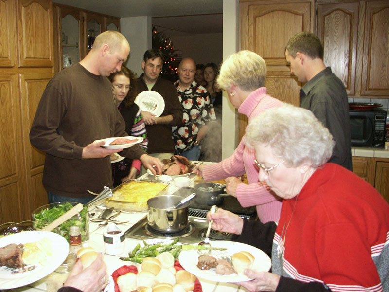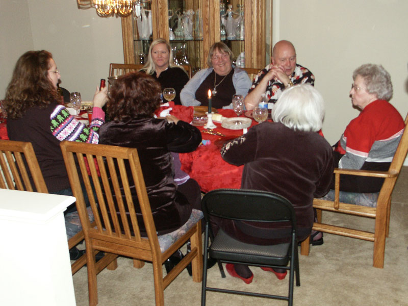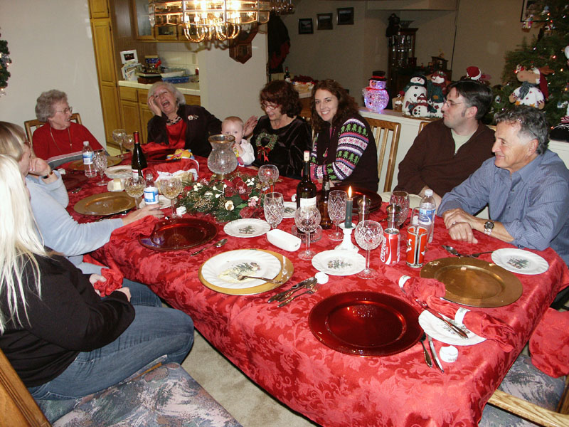Christmas Eve dinner occurred at the Jerry and Joyce house. Those dining were Colby, Courtney, Ciera, Dan, Heidi, Danielle, Barry, Bryan, Shannon, Sherry, Kerry, Jeff, Elaine, Dave, Rick, Lorraine, Marie, Kevin, Lila, Nicolas, Joyce and Jerry.