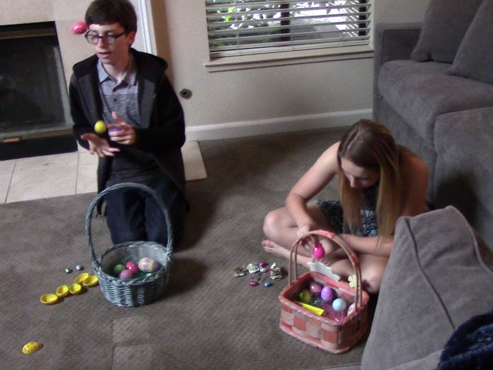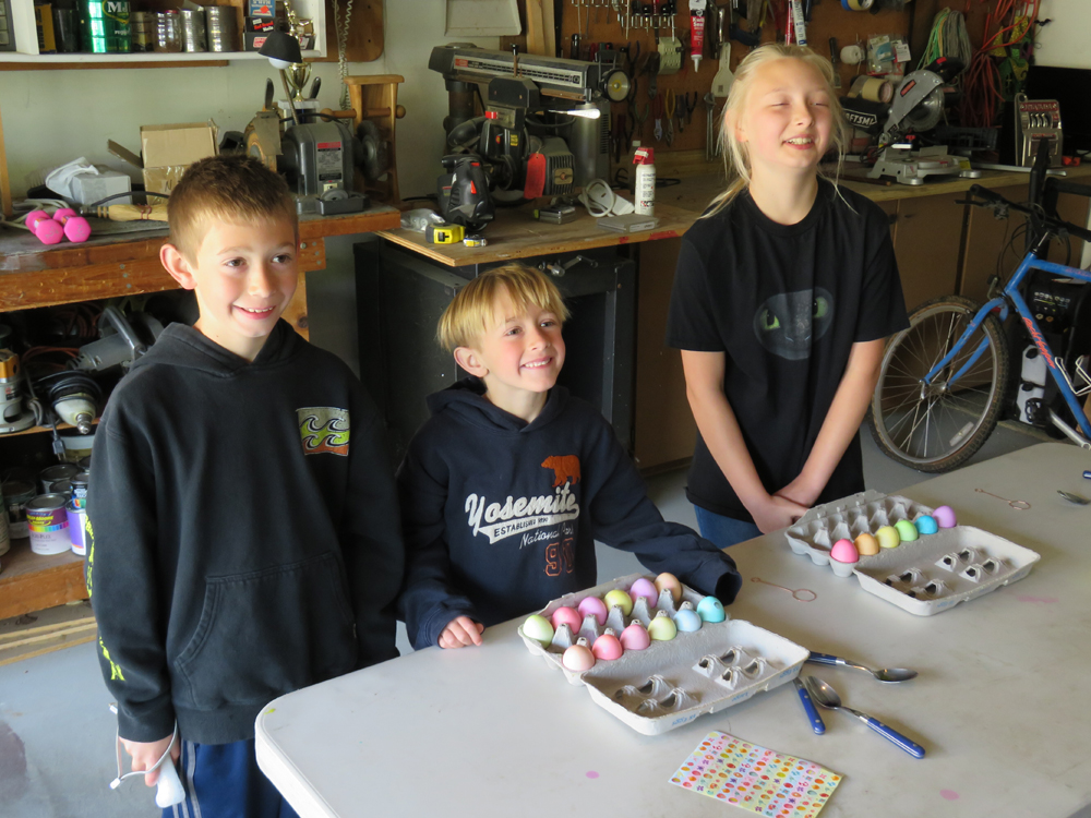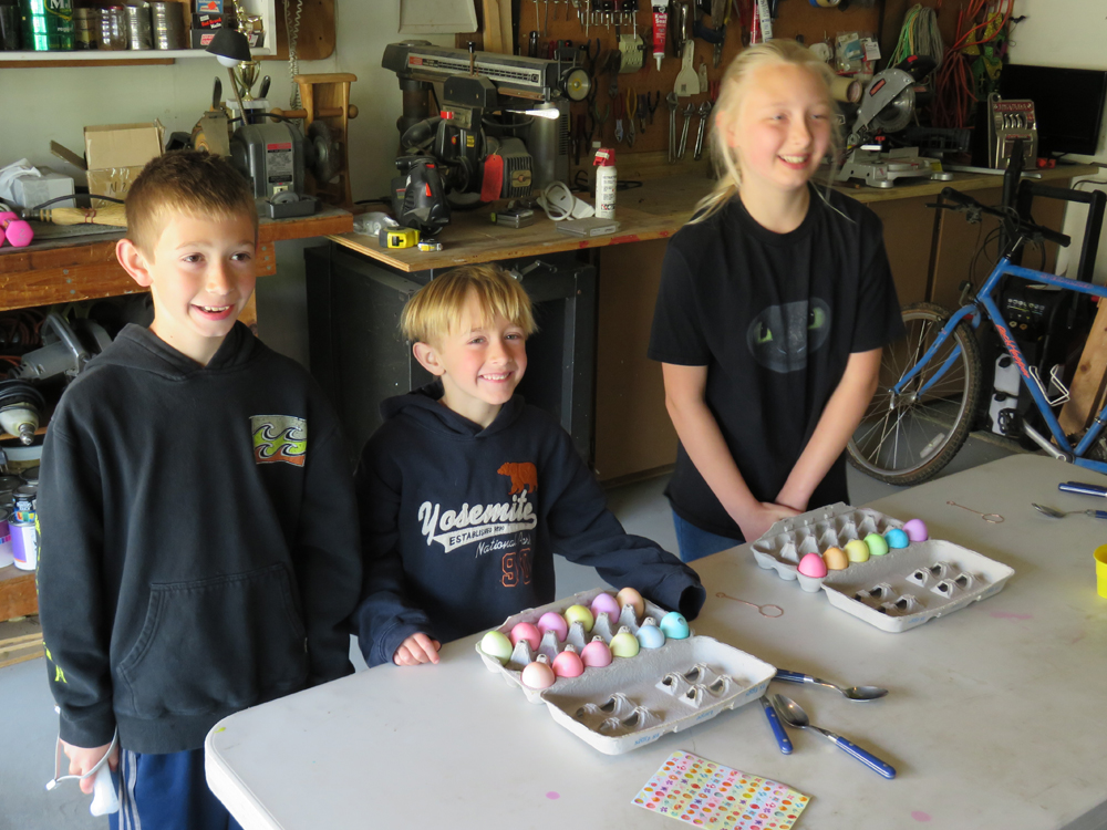 Click on the Play - Pause button at the bottom of the page to view a slide show. EASTER EGG DECORATING EASTER EGG SEARCHING PREPARING TO SEARCH The movie of the searching I didn't get because the camera was off THE REWARDS EASTER GRANDKIDS