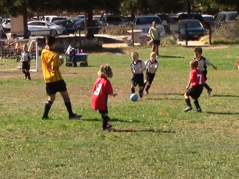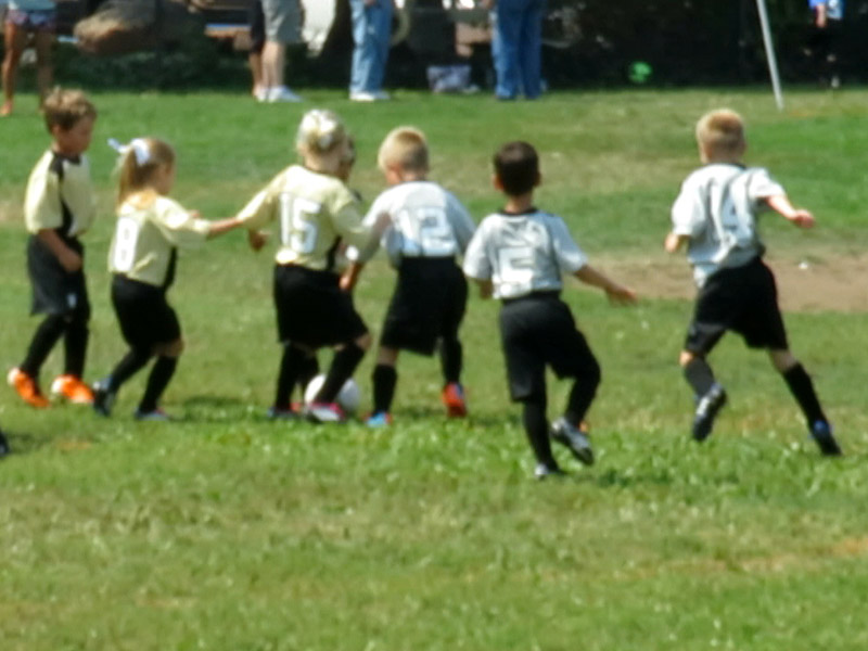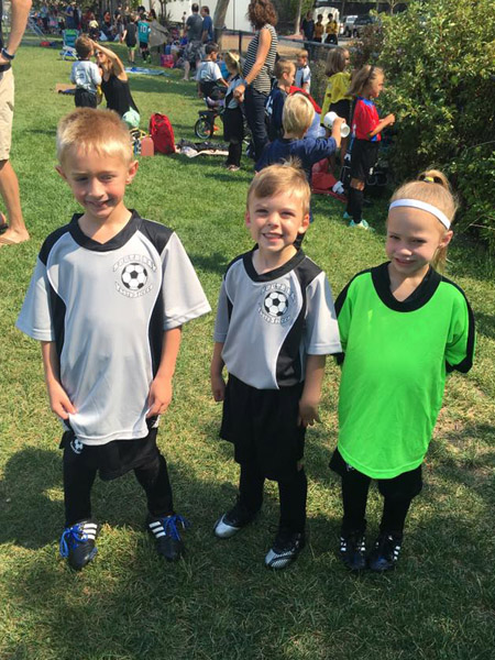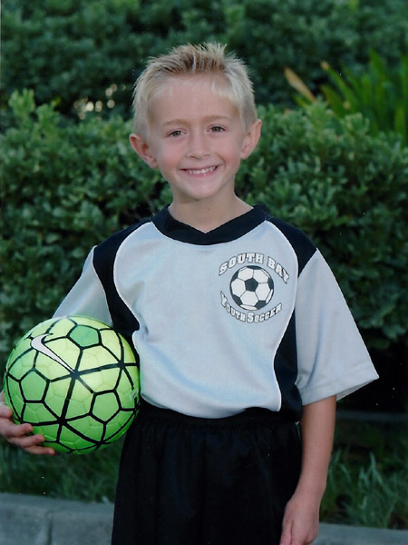 Mason is playing soccer August