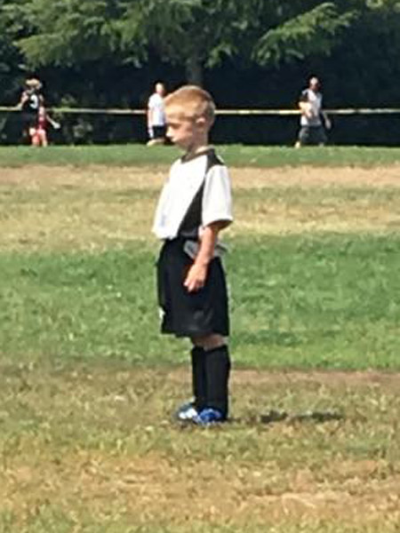 Mason playing soccer September