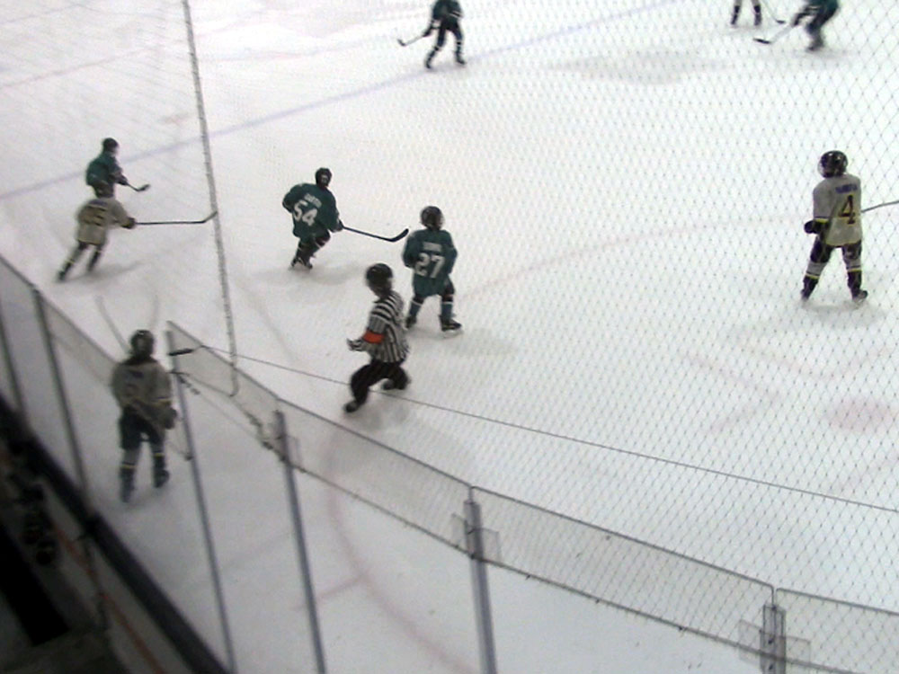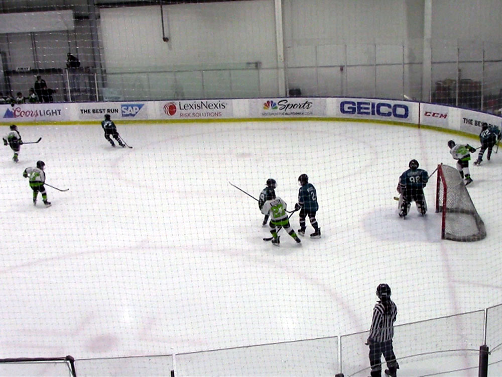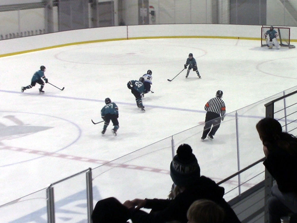 Mason playing ice hockey game in Fremont against Ella's team January